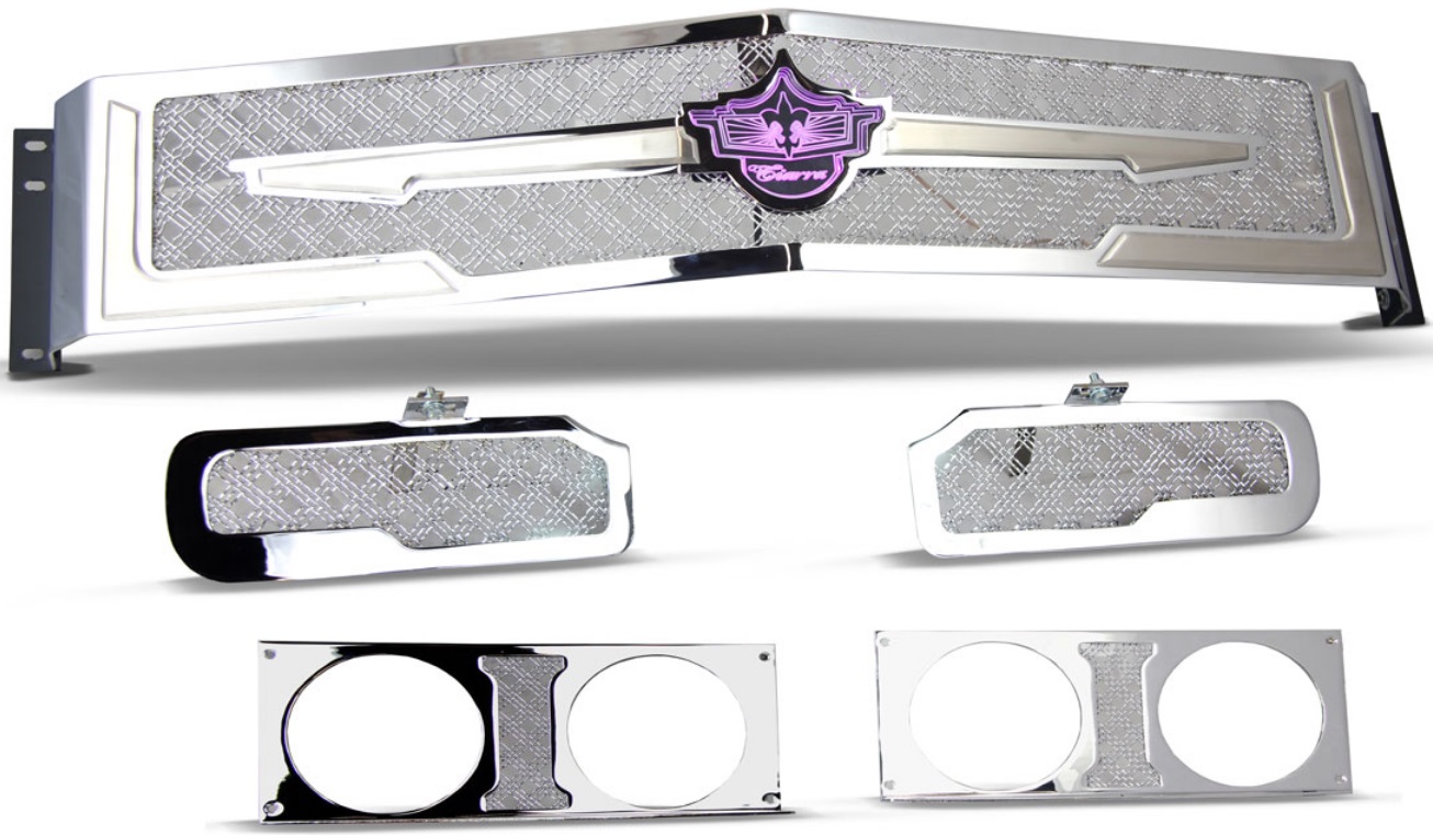 4 - piece - 1 main grille, 1 bumper grille, 2 driving lights surrounds