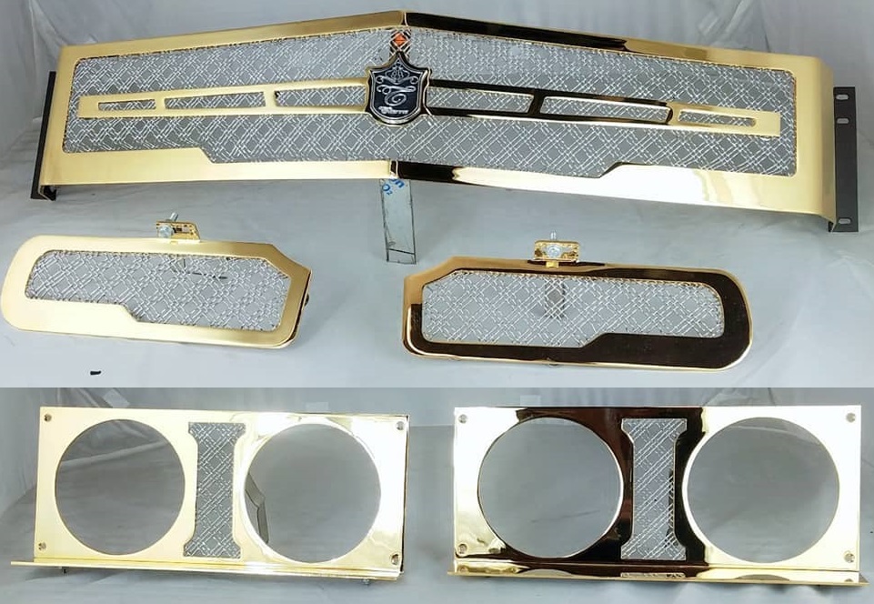 5 - pieces - 1 main grille, 2-piece bumper grilles, right and left headlight surrounds