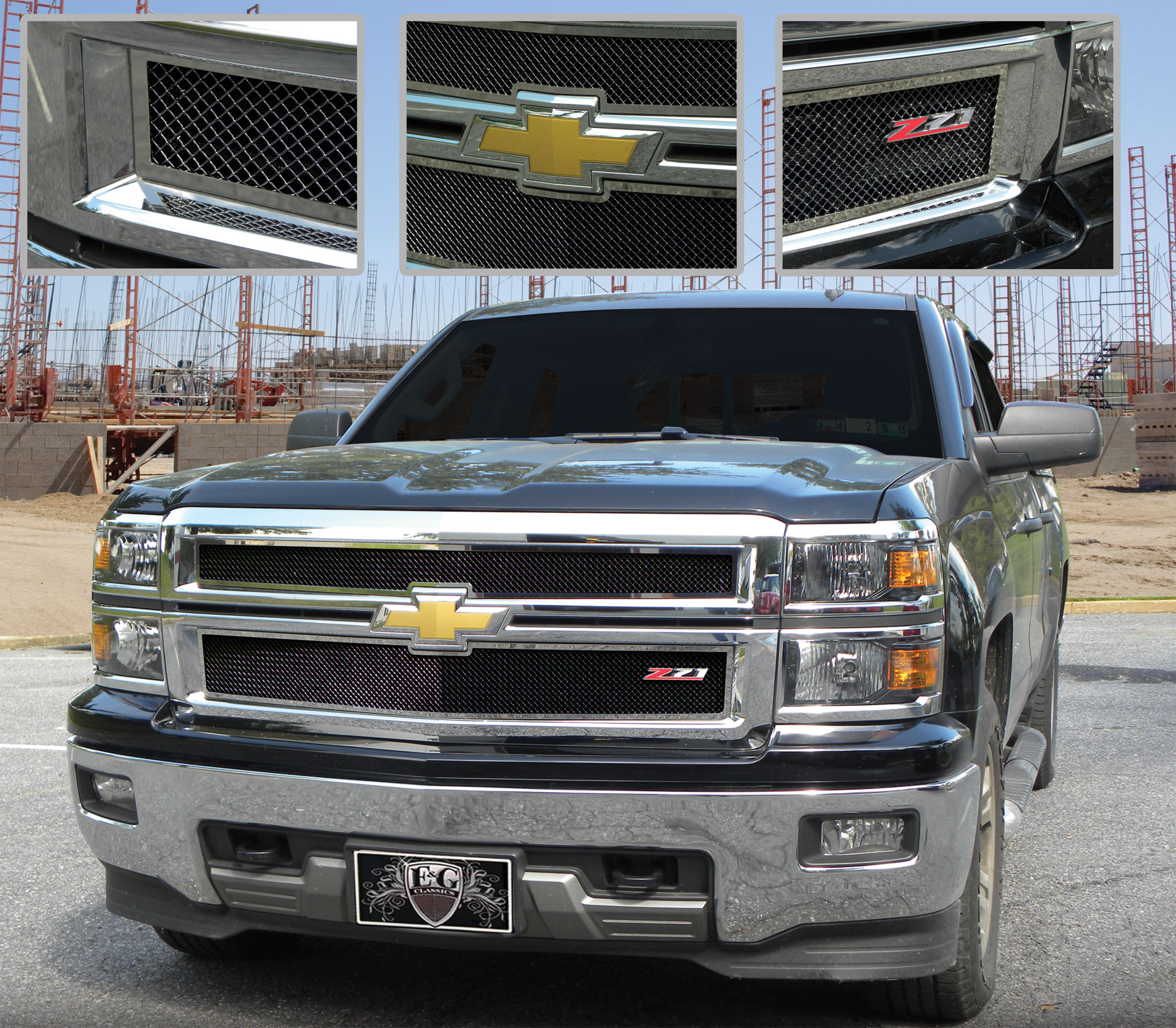 E&G CLASSICS 2PC Chrome and Black Heavy Mesh Style Grille